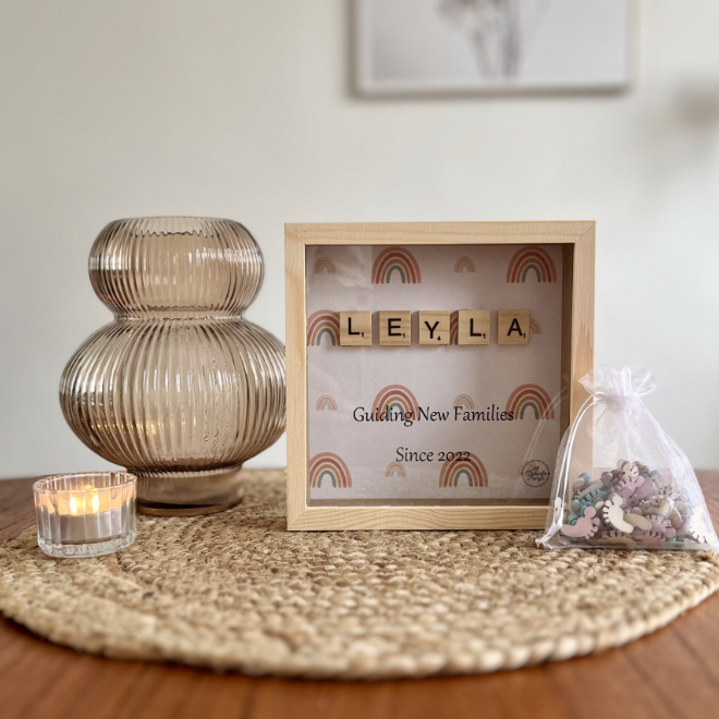 Typ je naam, kies een achtergrond en vul het jaar in vanaf wanneer je bevallingen begeleidt om het een persoonlijke touch te geven!